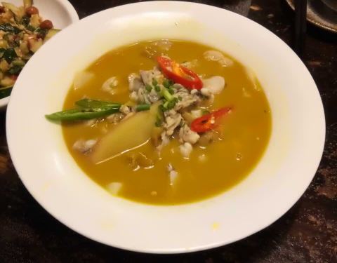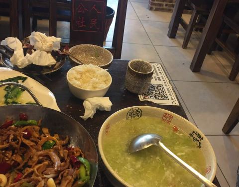 黄骨鱼一看就是养的,土味太重了,一点也不好吃,腊肉烟笋还不错,苦瓜干贝汤好喝