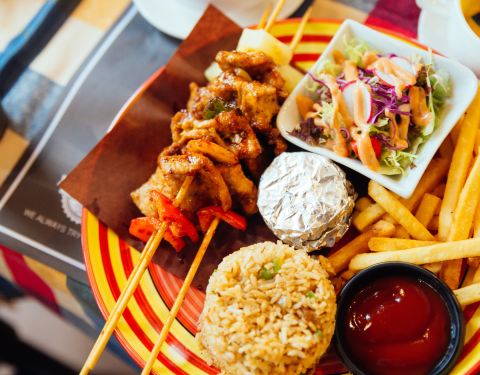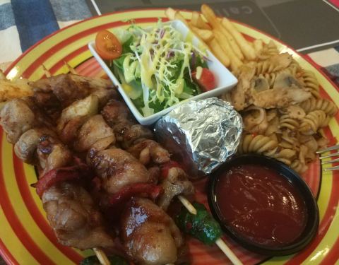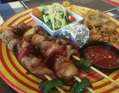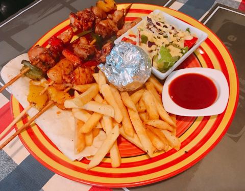 在市图泡一天看书写稿,觅食还是选择了遇见西木,可以说是这边性价比最高的一家了,特意避开了饭点,1点多才过来,就没那么拥挤了…自己一个人点了一份烤鸡腿排拼盘,看着不多,但没想到吃完真的是撑!3串肉串下...在市图泡一天看书写稿,觅食还是选择了遇见西木,可以说是这边性价比最高的一家了,特意避开了饭点,1点多才过来,就没那么拥挤了…自己一个人点了一份烤鸡腿排拼盘,看着不多,但没想到吃完真的是撑!3串肉串下去就饱了…肉很不错,够实在!