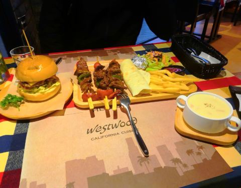西木美式餐厅是我目前为止在厦门吃过的最好吃也是最实惠的一家西餐厅,西木在厦门有好几家分店,当时我去的是图书馆店,位置就在厦门图书馆旁。才刚到门口服务员就热情的招呼你入座倒水,餐厅装修也是浓浓的美式...西木美式餐厅是我目前为止在厦门吃过的最好吃也是最实惠的一家西餐厅,西木在厦门有好几家分店,当时我去的是图书馆店,位置就在厦门图书馆旁。才刚到门口服务员就热情的招呼你入座倒水,餐厅装修也是浓浓的美式风格。我和女朋友两个人单点了一个汉堡,一份意面,再加上一份烤肉拼盘套餐;烤肉拼盘套餐可以自己选搭配套餐的主食或者浓汤,如果不想要汤的话还可以选饮料。人均50块钱就可以吃的很饱,如果想吃西餐的话西木会是一个非常不错的选择。