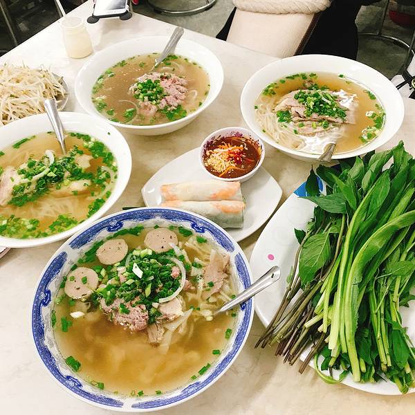 来越南怎么能不吃一次正宗的汤河粉呢?!游客、当地人都喜欢在这里喝上一碗美味的汤粉。繁忙的小店菜单就贴在墙上,直接用手势点了菜,来了满满一桌配菜搭配一碗pho也是给力,自己加料,加菜加青柠,记得一定要点...来越南怎么能不吃一次正宗的汤河粉呢?!游客、当地人都喜欢在这里喝上一碗美味的汤粉。繁忙的小店菜单就贴在墙上,直接用手势点了菜,来了满满一桌配菜搭配一碗pho也是给力,自己加料,加菜加青柠,记得一定要点油条哦!油条必须有!浸泡在鲜美的汤头里的油条入口爆汁,口口满足~店员很好特意给我换了一盘新出炉的油条,边冒汗边吃热汤的感觉太舒爽了!汤很鲜,不过感觉肉炖制的不够酥烂。他家甜品饮料也不错~