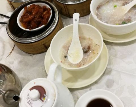 比起周围的其它餐厅这家店开得早,有广式早茶供应,所以生意挺不错。大多数的点心和上海的味道差不多,但粥还是熬的很好,而且里面的料非常足。