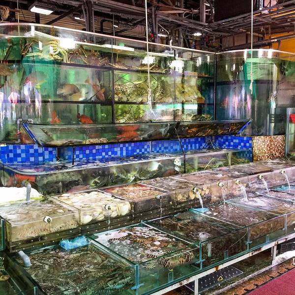 - ...都只是做一个参考,老板会跟你讲,还是现场看鱼缸里有什么东西照着点,菜单里的海货,不一定今天就有
