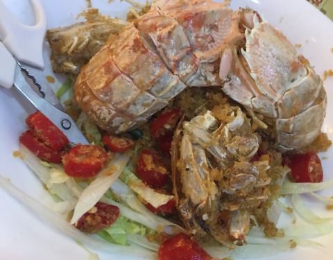 这里的口味超赞,食材都是非常新鲜的深海海鲜。环境有点类似大陆的大排档。看上去环境一般又靠海,海鲜应该没辣么贵,可是,我们想的太乐观了。 价目表上的菜都不贵,贵的都是自己去挑的海鲜。 椒盐濑尿虾,一只...
