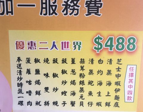 ...都只是做一个参考,老板会跟你讲,还是现场看鱼缸里有什么东西照着点,菜单里的海货,不一定今天就有