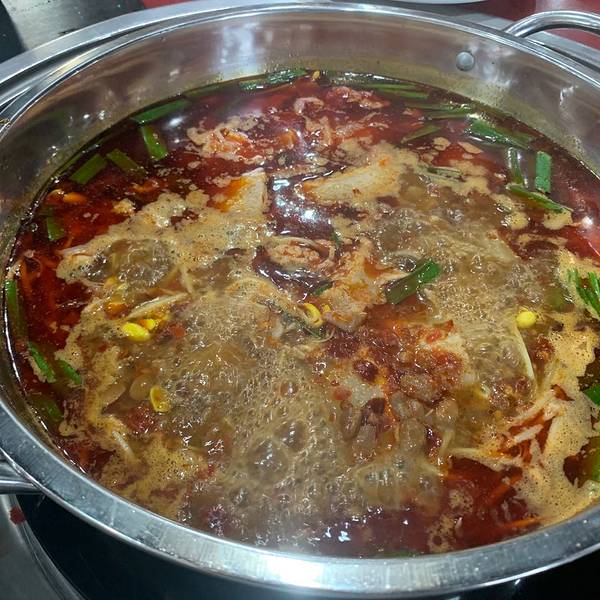 ...像,只是没有大块的软哨,锅底看上去有一层红油铺在上面,但是下了蔬菜以后特别香,而且不会有油腻感