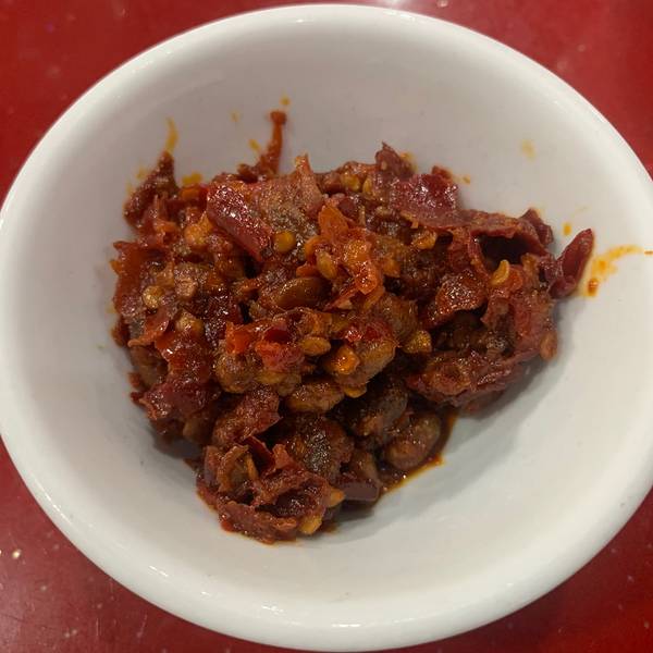 周末到遵义苟坝会议会址参观学习,回来时适逢饭点,亲戚建议到鸭溪尝下两大美食特产之一:豆豉火锅。 店家就在高速公路路口,交通非常方便,门口有免费的露天停车场,不用担心停车问题。 中式装修,古色古香。进门左侧的木质茶盘和座椅被小孩看上了,一来就坐在上面不肯下来,超级喜欢。 他家不用点餐,都是按人头计算餐费,是传统的吃法。店家会按照每桌的人数来上配菜,有白豆腐、油渣、酥肉、豆腐皮、蔬菜等。 他家的特色是豆豉蘸料,在除了鸭溪以外的其他地方是看不到的。偏硬的豆豉和豆瓣一齐放入蘸料的小碗内,不仅提供盐味,还有辣味和豆豉特有的香味。 豆豉火锅和清镇的比较像,只是没有大块的软哨,锅底看上去有一层红油铺在上面,但是下了蔬菜以后特别香,而且不会有油腻感。 需要注意的是,吃了以后浑身都会有臭味,回家后得赶紧洗澡除臭。