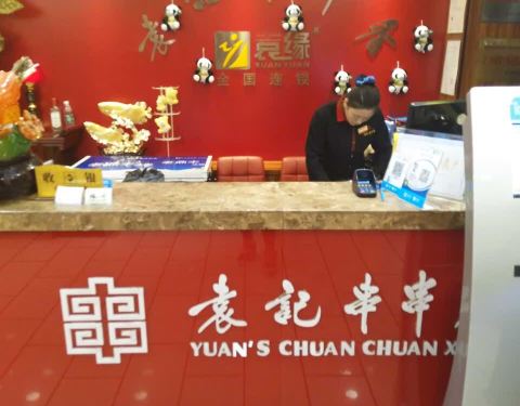 成都的地产品牌,创立于1998年,全国连锁,这家是去年才开的,袁记开到哈尔滨也就这两天,最早在会展中心的艺汇家 交通,这里靠近爱建,9路公交车在附近停车,安广街下车,距离中央大街2公里。 环境:很好,很干净,亮亮的,看起来很不错。 菜品:都是成串的,菜品价格也经过几次调整,因为在成都的串串价格小钳子2毛,大的1块,这个价格在东北菜品成本高的地方不太适用,开始1块5,现在0.9元一串,看单价还不贵,不过人均也必超过50 锅底,小锅35,大锅45,圆盘子的16,长盘子的12 价格都是按盘子跟竹签子数量算的,很是有趣。 蘸料,蒜泥底,加香油碟。香菜,蚝油,3块一份香油碟,其他免费,麻酱也是3块一份。蘸料是独立包装的,一锅一份,应该没有回油,价格摆在那儿呢,锅底高汤,加红油底,煮沸之后把串串放进去。冬瓜很好吃,鱼丸也不错,豆筋好吃,这个东北不常见,还有苕粉也要来一盘。蘸料,葱蒜香油香菜蚝油,无敌了酥肉,可以多煮一会儿入味,也可以小煮一下,酥肉还是脆脆的,就是炸肉段,必点黑毛肚,口感很好,记得七上八下不要煮大了,要不该硬了。锅底,很多油有没有连锁店,东西很完备,旁边有一个车子上面有桶放钳子,还可以放菜,服务基本自助,结账找人就行。 这家人很多很多,17点的时候还好,18点之后外面全是人,屋里全是人,楼下大厅全是人,我之前还一直以为他家没人呢,结果那么多,21点还在排队,所以不想排队记得早去。