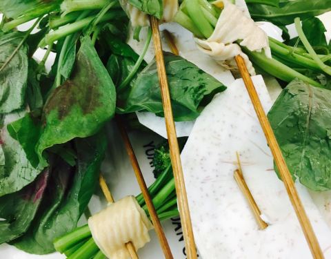 价格都是按盘子跟竹签子数量算的,很是有趣。