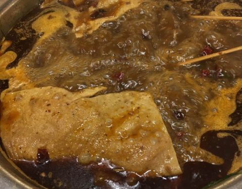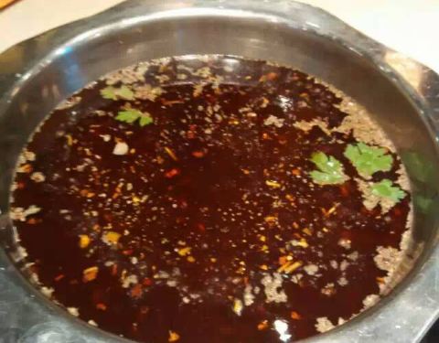 蘸料,蒜泥底,加香油碟。香菜,蚝油,3块一份香油碟,其他免费,麻酱也是3块一份。蘸料是独立包装的,一锅一份,应该没有回油,价格摆在那儿呢,锅底高汤,加红油底,煮沸之后把串串放进去。冬瓜很好吃,鱼丸也不错,豆筋好吃,这个东北不常见,还有苕粉也要来一盘。蘸料,葱蒜香油香菜蚝油,无敌了酥肉,可以多煮一会儿入味,也可以小煮一下,酥肉还是脆脆的,就是炸肉段,必点黑毛肚,口感很好,记得七上八下不要煮大了,要不该硬了。锅底,很多油有没有连锁店,东西很完备,旁边有一个车子上面有桶放钳子,还可以放菜,服务基本自助,结账找人就行。