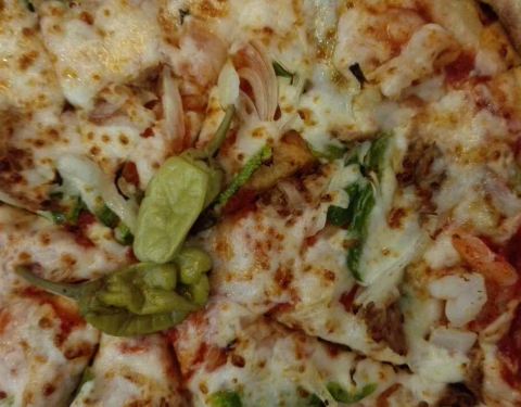 新店刚开不久力度还挺大的 在创客空间 只能走室内 室外的门不开哦 店内不大 堂食桌椅较少 披萨制作过程透明化 点了九寸榴莲披萨 大概十几分钟 默认外带 六块的样子 榴莲果肉还可以 配的酱汁一般吧 喜欢点缀的腌制酸辣椒 棒棒哒[强]