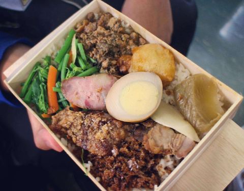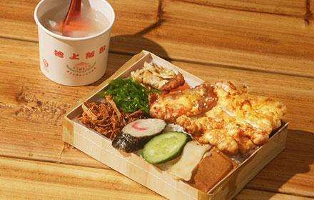 木盒盛饭菜是池上便当的标志。它比塑料餐盒更环保卫生和透气,米饭的热气透过木盒散去不会被闷,这样依然能保持米饭的弹性嚼劲。 值得前来