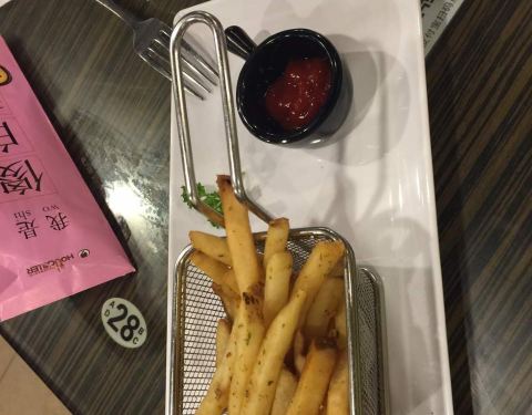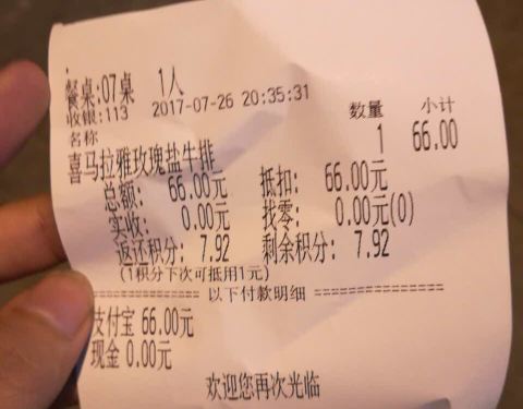 点了新推出的玫瑰盐牛排,六成熟,很美妙,轻轻一划就切开了,好吃,没有翻,一面微焦,下次要试下五成的。