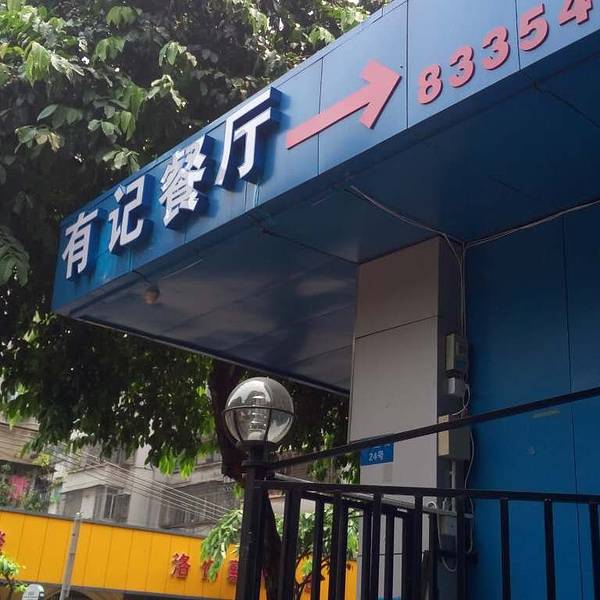 这家店隐藏在一个小区的居民楼里面,如果不是熟客带路真的不知道有这么家店。不过,听朋友说这家是老字号来的,开了几十年,性价比还是比较高的。路边有一个指示牌,走进一个铁栅栏门,左右两边两栋居民楼都有一...这家店隐藏在一个小区的居民楼里面,如果不是熟客带路真的不知道有这么家店。不过,听朋友说这家是老字号来的,开了几十年,性价比还是比较高的。路边有一个指示牌,走进一个铁栅栏门,左右两边两栋居民楼都有一个大大的招牌写着有记,左手边的旧一点,右手边的看上去比较新。为了体验30年老字号,毅然往左手边那栋楼走去。一进门口上一条窄窄的小楼梯,上到一半右边有两间房,其中一间刚好是一张小桌子,只能容纳3-4人的房子,我们两个人刚刚好。房间虽然比较老旧,墙壁发黄,但是吊灯,花瓶还是布置得有点雅致。点了一汤一菜,我们吃得不多,说两个就够了,服务员再三强调,就一个菜哦,就一个菜哦,???我们再三确定是,然后她很不爽的摔门而去,态度还真是恶劣的。午饭时间,还是比较多人的,陆陆续续看到有人进来吃饭,旁边那个房间人比较多,说话比较大声,这边的房间都能够很清晰地听到。冬瓜筒骨煲,20+元一份,一个小瓦煲装着,冬瓜切薄片,筒骨几大块,汤上洒满葱花,味道味精略重。梅菜蒸肉饼,比较贴心的用刀斜切成小块,肉饼质地也够厚,味道还算可以,梅菜也不会很咸那种。叫了2个白饭,才刚叫,饭就上来了,速度还真快,加上房间费5元,整顿饭下来就50多,也不算贵,份量比较够,感觉老字号还是有一份人情味在的,就是服务态度还有待改善。比较适合夏天吃,也不会太油腻,冬瓜消暑,就是味道太重味精了梅菜肉饼挺厚实的,口感还好