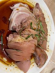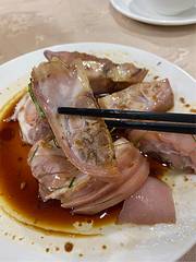 白切猪手一如既往的好。招牌菜人人爱。不过斩的时候有连刀。且大块。吃起来很豪气。碌鹅,好肥腻。有酸菜垫底,稍解了油腻。上汤百花菜不错。甜薄撑皮做的有点厚,吃了一个便腻了。也许是因为鹅的原因吧。