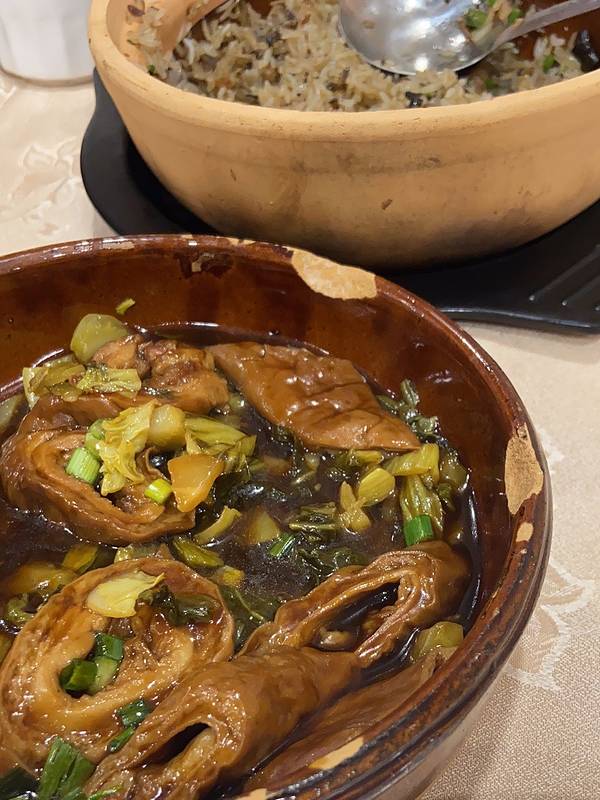 味道还可以,由于是我自己去的,只有一个人吃不了太多,点了两个菜,下次有机会再去。 - 现在只开午市和晚市,特别是晚餐时间段人流不少,这家的秘制茄瓜,蜜汁茶花鸡口味不错,环境一般,服务一般