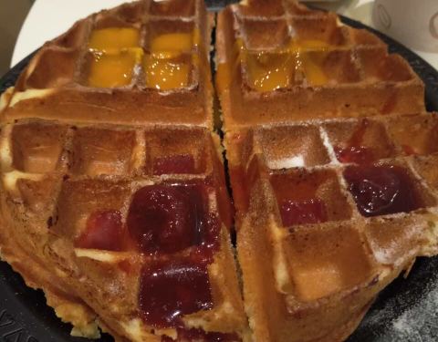 松饼上的酱不好吃 其他的还不错 热可可是可可粉泡的 喝的时候会觉得有点渣渣