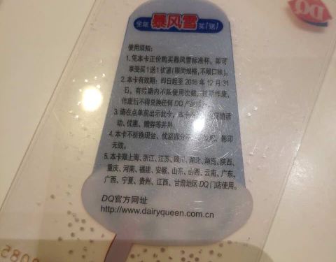 又来吃我最爱的DQ了,有优惠卡,吃就是便宜无负担,不知道明年还能不能出这么优惠的卡了?