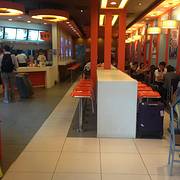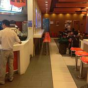 餐厅位于南站二楼候车室处,位于候车室西南边,从电梯下去便是南站的南出口,地理位置绝佳;餐厅的标志也很显眼,红底黑字的标示远远就能够看到;餐厅的面积谈不上很大,不过餐厅内部散桌的比重较大,而且桌位之间的分布相对宽松,这样的设置行李不多的话东西还是足够放置的,而且也不会影响到过道的空间,但是显然餐厅没有充分合理的用好自身的空间盈利。餐厅里面的优势是特别干净,而且采用的是快餐的销售一体化方式,人流周转率很高,能够在相同时间内比较大的程度上提高了它的销售额,即便这样,来的时候基本上这里的位置都坐满了。