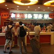这是一家非常不错的快餐店,它坐落在北京南站候车厅内,店面很大,客流量也很大,饭菜口味不错,各种套餐都很受欢迎,非常值得品尝。