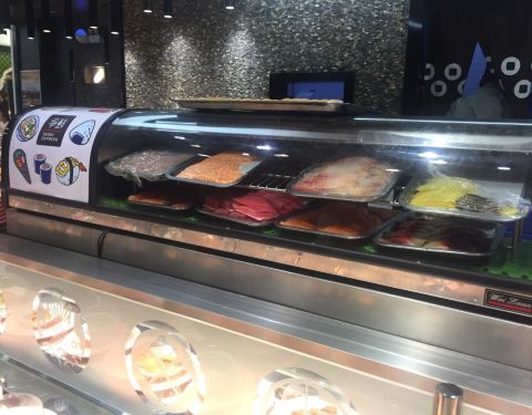 虹悦城负一楼,很好找,干净清爽,口味不错,单品都是6元一份,除了寿司还有刺身甜品手卷可以选择,另外有免费茶水,纸巾提供。