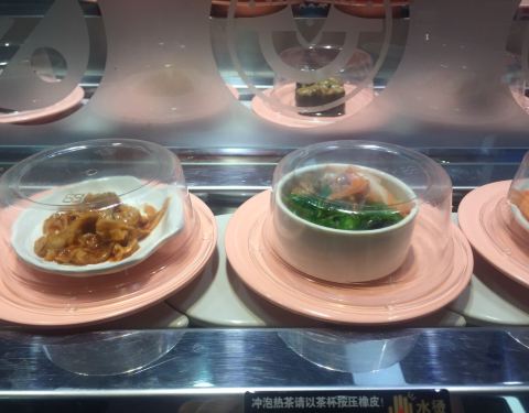 - 寿司说有多好吃还不至于,每盘6元,价格很亲民,性价比超级高。 章鱼和中华海藻等小菜,味道清新可口