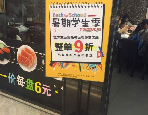 很好找,干净清爽,口味不错,单品都是6元一份,除了寿司还有刺身甜品手卷可以选择,另外有免费茶水...