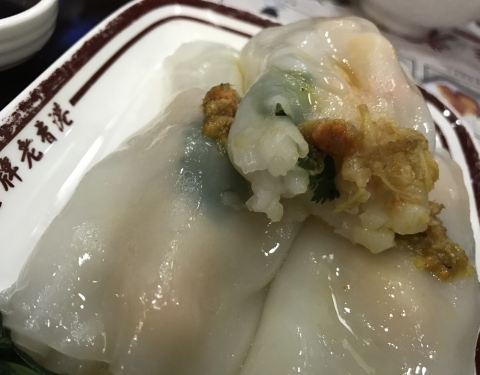 座位很挤 一桌挨一桌 很有香港的风范。 要了一个肠粉 一个云吞面 虾料都很足,对得起两百多的价格。我不太喜欢肠粉的面皮,有些厚了,吃着有点粘腻。 服务员态度一般,问他有没有餐巾纸,过来伸一巴掌说五块钱...