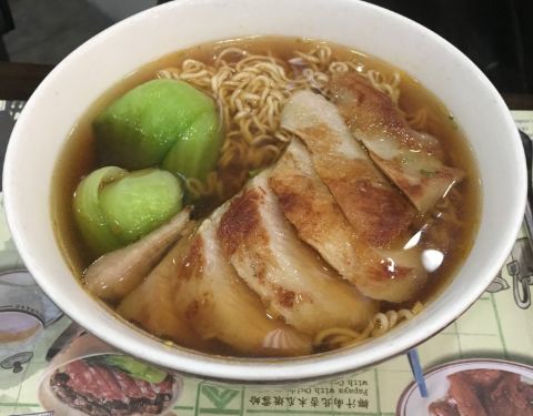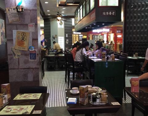 座位很挤 一桌挨一桌 很有香港的风范。 要了一个肠粉 一个云吞面 虾料都很足,对得起两百多的价格。我不太喜欢肠粉的面皮,有些厚了,吃着有点粘腻。 服务员态度一般,问他有没有餐巾纸,过来伸一巴掌说五块钱一包,然后扭头走了,估计一看我就是穷人也不会买。
