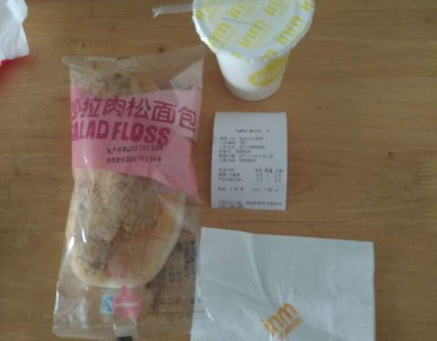 哈哈他了,还不错,一名,包子面包饭团牛奶。