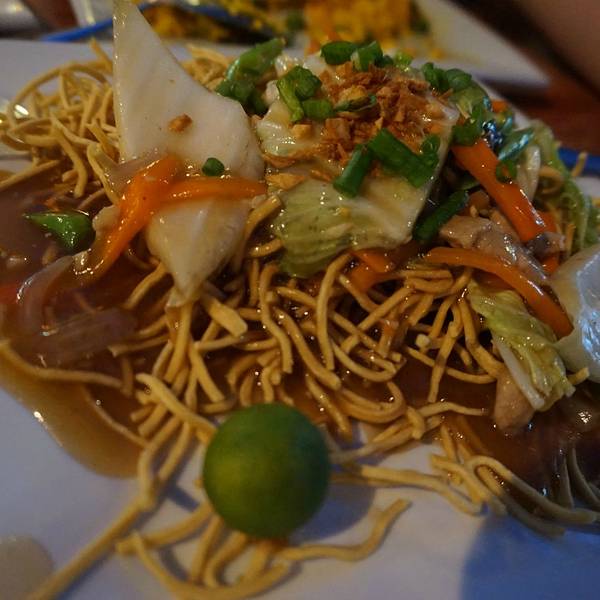 菲律宾长滩岛是一个以美食而吸引游客的海岛,长滩岛的沙滩分S1/S2/S3区域,每个区域内都能寻找到各式各样的美食,Gerry’s Grill位于S1区域,这家餐厅是具有当地特色的餐厅,在菲律宾有很多家分店,口碑很不错。长滩岛的分店有室内和室外区域,室外区域就是在沙滩上就餐, 吹着海风,听着海浪声,吃着美食,很悠闲,很舒适。如果室外没有空位,可以多等一会,关键这家店的性价比很高,我们点了一份色拉,一份烤鱿鱼,两份主食,吃的非常饱,加上服务费也就1200比索,人民币也就160-170元。深海鱼色拉是他们家的独创菜,所以我们点了一份,口感有点酸,鱼肉很软,入口即化,这份色拉的价钱也是很贵的,好像要300多比索,相信鱼肉的品种肯定很珍贵。烤鱿鱼是每位食客必点的一道菜,一条鱿鱼有500g,400多比索,量肯定是可以满足两个人的份的,最关键的是味道也不错,好像加了蜂蜜的感觉,有点甜味,再加上前面的色拉,很开胃。主食方面,起初我们不知道它的量,点了2份,一份海鲜炒饭,一份海鲜炒面,炒饭里面的饭可是相当惊人的。炒面不是传统的炒面,炒面里面的面是经过油炸的,更像是国内的两面黄,浇头淋在上面,口感很好。