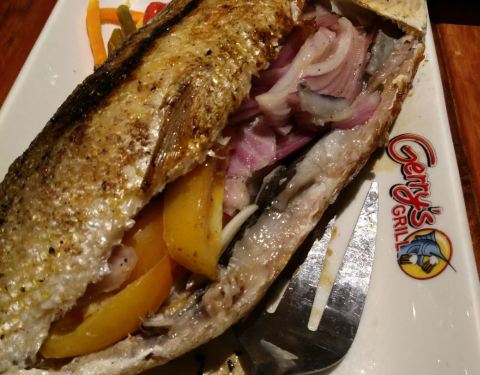 菲律宾长滩岛是一个以美食而吸引游客的海岛,长滩岛的沙滩分S1/S2/S3区域,每个区域内都能寻找到各式各样的美食,Gerry’s Grill位于S1区域,这家餐厅是具有当地特色的餐厅,在菲律宾有很多家分店,口碑很不错。...菲律宾长滩岛是一个以美食而吸引游客的海岛,长滩岛的沙滩分S1/S2/S3区域,每个区域内都能寻找到各式各样的美食,Gerry’s Grill位于S1区域,这家餐厅是具有当地特色的餐厅,在菲律宾有很多家分店,口碑很不错。长滩岛的分店有室内和室外区域,室外区域就是在沙滩上就餐, 吹着海风,听着海浪声,吃着美食,很悠闲,很舒适。如果室外没有空位,可以多等一会,关键这家店的性价比很高,我们点了一份色拉,一份烤鱿鱼,两份主食,吃的非常饱,加上服务费也就1200比索,人民币也就160-170元。深海鱼色拉是他们家的独创菜,所以我们点了一份,口感有点酸,鱼肉很软,入口即化,这份色拉的价钱也是很贵的,好像要300多比索,相信鱼肉的品种肯定很珍贵。烤鱿鱼是每位食客必点的一道菜,一条鱿鱼有500g,400多比索,量肯定是可以满足两个人的份的,最关键的是味道也不错,好像加了蜂蜜的感觉,有点甜味,再加上前面的色拉,很开胃。主食方面,起初我们不知道它的量,点了2份,一份海鲜炒饭,一份海鲜炒面,炒饭里面的饭可是相当惊人的。炒面不是传统的炒面,炒面里面的面是经过油炸的,更像是国内的两面黄,浇头淋在上面,口感很好。