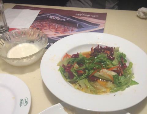 首先说环境吧,著实很不错,毕竟店是联锁的店,周末中午过去吃的,基本上落座率在80%,菜的种类挺多,不过据说有些菜没有,点了牛排,端上来的时还有炙热的铁板,虽可以享受自己煎牛排的乐趣,非常的好,口味也...
