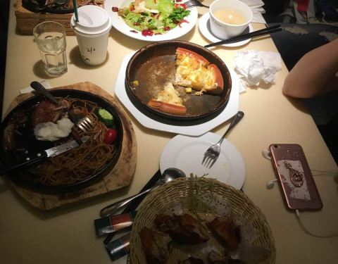 首先说环境吧,著实很不错,毕竟店是联锁的店,周末中午过去吃的,基本上落座率在80%,菜的种类挺多,不过据说有些菜没有,点了牛排,端上来的时还有炙热的铁板,虽可以享受自己煎牛排的乐趣,非常的好,口味也是非常的不错,另外,炒饭味道也不错,若有机会,可以多尝试一下他菜品哩。