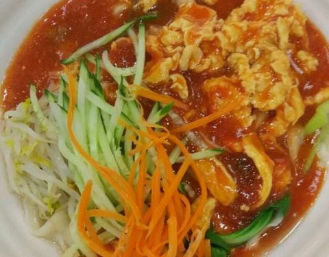 最喜欢吃茄汁面了,有种家的感觉。喜欢浓浓的番茄味,还有里面的香菇,很鲜。这次品尝了她们的鸡蛋面,发现 比茄汁面还好吃。凉菜可以两掺,要的花生和土豆丝,还不错。