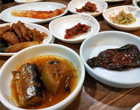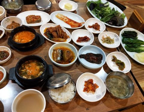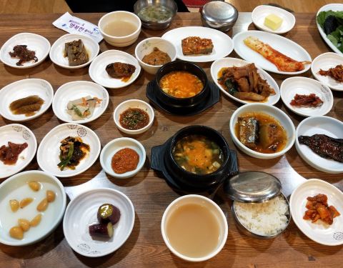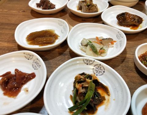 这家是传统的韩国菜馆,老板来自韩国,所以东西十分正宗,味道也不错,真的是满桌子都是定食,好壮观,感觉选择虽然不多,但套餐是足够吃的了。