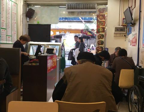 店面是小吃店的装修,主打粉面饭、小吃、炖汤和糖水。后来吃了杏仁糊,很浓很稠,满嘴的杏仁味道,很香