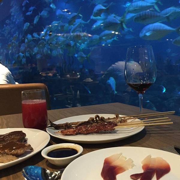 洲际酒店的海底餐厅特别适合亲自来,餐厅的玻璃缸坐了一圈的小盆友,菜品种类也很丰富,因为贝壳儿姨姥姥不吃海鲜的,这里面是一应俱全,适合各种人群。你要说味道嘛,爱拉也没觉得有多惊艳,但种类不少,最棒的还是环境啦。