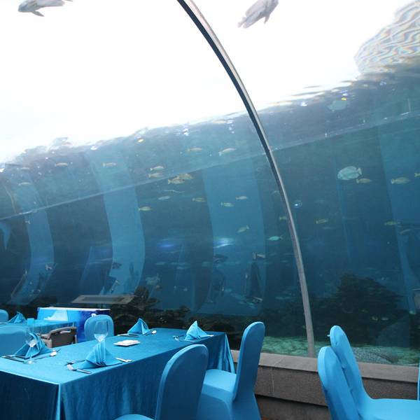 天房洲际海洋餐厅 三亚海棠湾天房洲际度假酒店特色海洋餐厅,引源南中国海,270°神秘海蓝围绕,五千余尾海洋生物游弋其中,多彩斑斓的光与影,旖旎的珊瑚,尽显唯美梦境。270°全海水萦绕,水波荡漾、粼粼之境,...