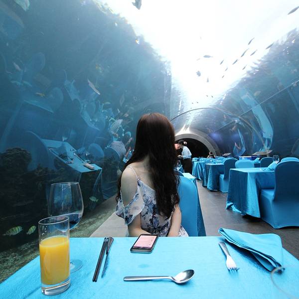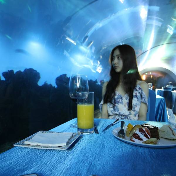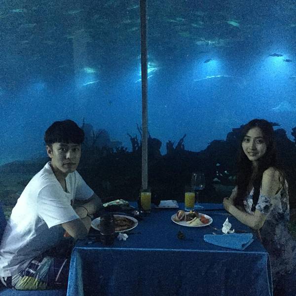 魔鬼鱼自由自在的游来游去,说不定它正在悄悄的看着你享受饕餮美食呢。如果在这里求婚,是不是超级浪漫呢