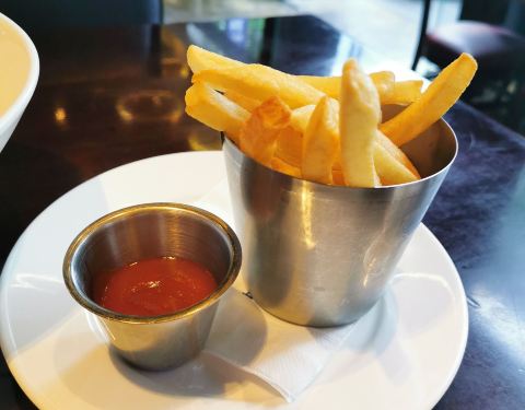 玉米脆片蛮香脆的,店家自己做的,薯条很粗很壮,不去皮的那种,脆的时候还不错吃,不过过一会儿就软掉了,蘸番茄酱很搭哦~