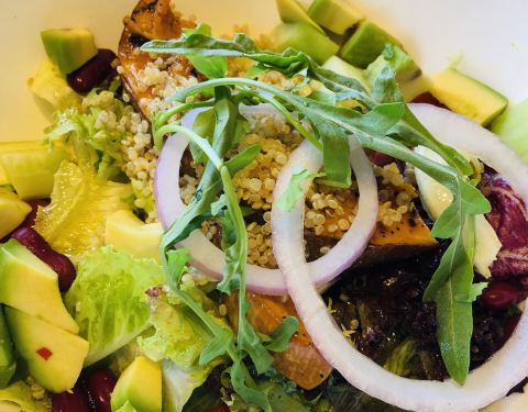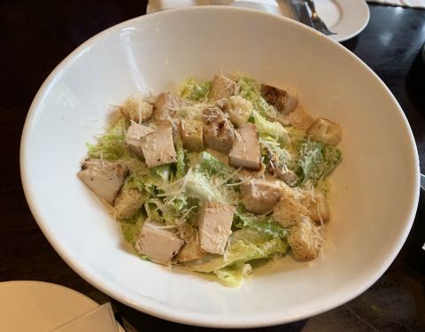 太古里这家蓝蛙其实是我很早以前就想来尝试的一家餐厅啦,终于有机会过来吃,可惜还是一个人。 店员很热情,还介绍了注册会员的活动,然后扫码注册会员之后多送了一份薯条。 现炸的薯条很酥脆。 美式搭配了一块小饼干,咖啡味道不错,饼干感觉太甜了。鬼使神差在喝了一半黑咖之后把奶全倒进去了,很久不喝这种了反而觉得不习惯,还是更爱黑咖。 鸡肉凯撒沙拉挺大一份,鸡肉很嫩,吃起来就没什么嚼劲,大概我吃不惯这种口感?感觉还不错,但是不惊艳。