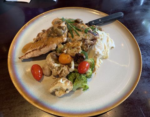 太古里蓝蛙,中欧、东欧国际餐饮品牌,以西式餐点为主。蒙大拿州汉堡、200天澳洲谷饲碳烤西冷牛排、烤鸡胸肉汁蘑菇酱、鸡肉凯撒沙拉等。