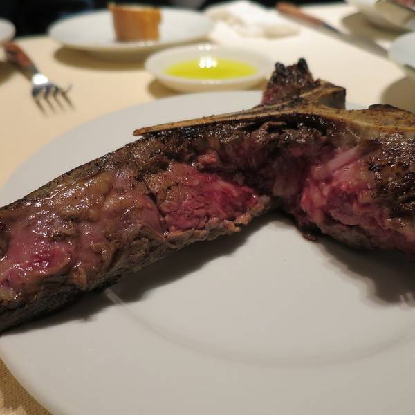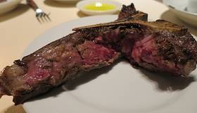 【餐品】注意这里的牛肉分为肉饼和牛排,一定要点牛肉,肉饼的口感松散并不好吃。牛排我要的和牛肋骨,骨头块很大要的7成熟。肉质略微老了点,有胡椒、烤肉酱两种可以搭配。配餐的是意面和薯条,意面和这个烤肉汁也很搭配,味道很好。香槟是我自己选的,我喜欢喝牛排搭配的味道,一般游客也可以选红酒或者饮料。一份吃下来非常饱,可以刷卡结账,推荐哦