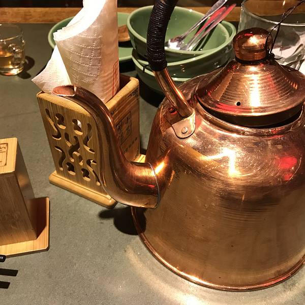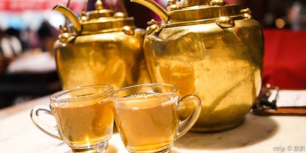 梨汤是用铜壶装着,倒进小小的玻璃杯里,感觉很有意义