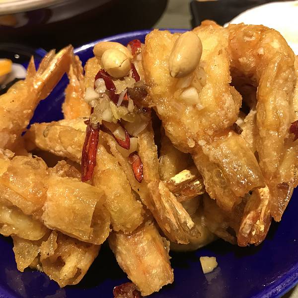 小吊梨汤,梨汤是温的,甜而不腻,非常浓的梨香飘逸四散。梨球酥皮虾,虾的个头非常大,炸的酥脆,完全不需要去壳,十分香,梨球则既有酥香又解腻。