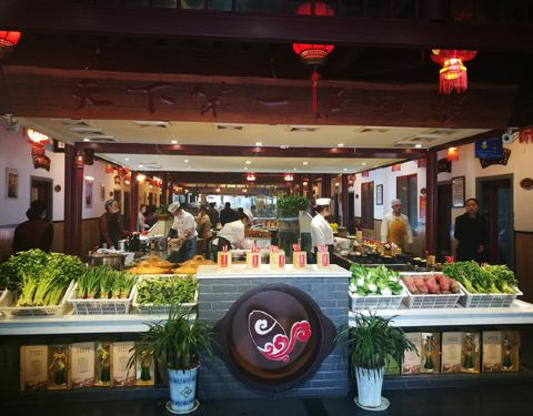 【位置】 雨花西路208号北门,导航过去位置准确。 旁边有酒店自己的免费停车场,看门人根本不管,随便乱停,有一车占两个位的,有堵着别人停的。 【环境】 从停车场进饭店,好几个大池里养了胖头鱼,都是来自金牛...【位置】 雨花西路208号北门,导航过去位置准确。 旁边有酒店自己的免费停车场,看门人根本不管,随便乱停,有一车占两个位的,有堵着别人停的。 【环境】 从停车场进饭店,好几个大池里养了胖头鱼,都是来自金牛湖水库。 中式门面,不太显眼。内部是现在流行的明档+中式+农家乐风格,座位间距尚可,包间目测还不少。 卫生间岀乎意料得简陋,卫生状况也很一般。 【服务】 服务员数量不足,坐下来好久没人理会我们,叫住一个匆匆忙忙的服务员,告诉我点菜方式,自己到明档那里拿筹码(上面有菜名、价格),交给穿黑西装套裙的经理,有的菜没有筹码,直接跟经理点。 上菜速度还可以,买单用会员卡打个9折。 【食物】 京葱烧黄牛肉,98元,份量还不错,味道蛮好,老爸说葱比牛肉还好吃。 茨菇烧肉,35元,茨菇小小的,软糯可口,肉片味道浓郁,好吃。 清炒马兰头,25元,味道不错,油大了点。 浓汤砂锅鱼头,158元,好大一锅,内容也丰富,味道不错。 葱香烧饼,19元,饼又薄又脆又香很好吃,葱馅味精加多了,又咸又骺。 总共335元,打折后299,性价比蛮好的。 【评价】 餐饮博览会,充300元,送了一条6斤多的胖头鲢,金额无期限,可以随时用,这点超赞。 买单时告之充值卡又是会员卡,还可以打个折,很满意,明年多办几张去,哈哈哈哈哈~