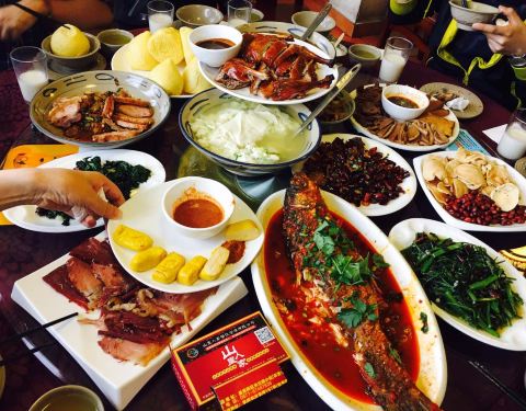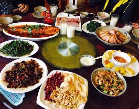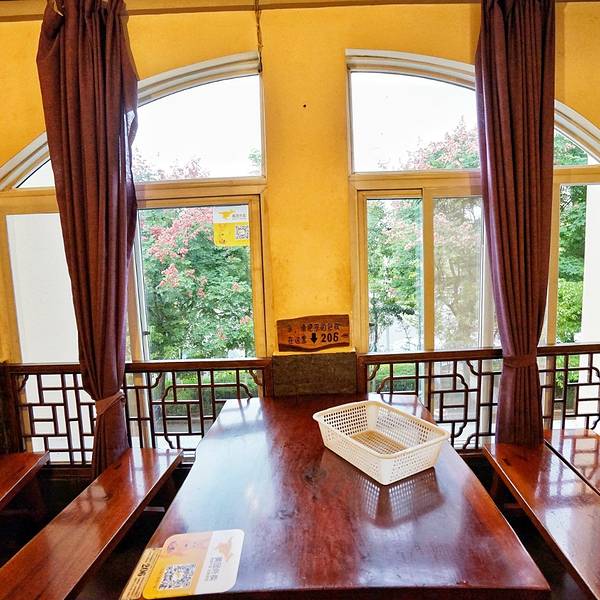 店面和招牌很显眼,老远就能瞧见,山里人家是个连锁牌子,总共三家店,市区的北京路和附近的安宁市太平镇都有。就餐环境马马虎虎,简单的装修但干干净净,一楼的位置不太多,于是我们上了二楼。中式木桌椅,服务人员着装也是散发着山里人家的气息,和名字很相符啊。二楼的空间比较大,有容纳多人就餐的圆桌,也有靠窗的长条桌椅。窗外景色真是不错,不知道是什么树还开了火红的花。云南这边餐馆大都没有菜单,虽然也有贴一张,价格也不全,只好看着食材凭着感觉点了。农夫鲫鱼,15元一条,味道特别好,外皮是炸焦那种,酸酸甜甜的,还这么便宜,差点还想再来一条。干椒炒腌肉,这个也相当推荐,腌肉不会柴也不硬,,有点辣,分量足,下饭利器。来云南好几次,每次都觉得滇菜好好吃,他们的佐料香料放得很齐全,比川菜更多层次。蘸酱小洋芋,需要吐槽的是这个蘸酱不太好吃,哪怕干海椒碟也更好些,简直浪费了这么土豆啊。这边真是家家户户都有炸土豆这道菜,路边小吃摊也是。四季丰收,就是四种蔬菜杂烩,红萝卜白菜玉米和嫩南瓜,非常营养健康,这算是半份的量。大合照,我们两个人这几道菜才70多元,物美价廉真的是,虽然菜单价格,也不用担心吃到天价虾。不过米饭真的是我吃过最贵的了,2人8元,纸巾需要的话也是2元一盒。所以最终消费了80多。