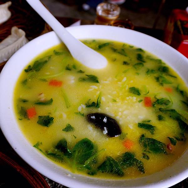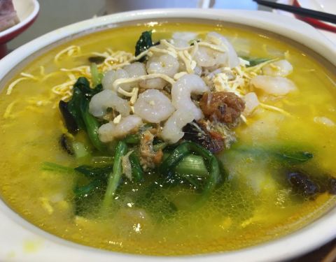 很大一个烧卖,味道不错就是有点油,吃第二个的时候是一边喝茶一边吃烧卖的。【虾仁咸肉菜泡饭】