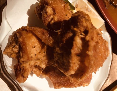 然后有榻榻米可以选择脱鞋坐上去。 工作日的中午要早点去, 我们去的时候人不是很多, 走的时候就坐的挺满了。 服务态度很好, 灯光昏暗风, 让人感觉比较私密舒适。 上菜的速度挺快的。 我们点了五个菜, 吃的很满足。 食材都挺新鲜的, 味道老fat她也是相当满意, 最后也是吃的饱饱。 「炸鸡块」炸鸡块觉得很赞, 比什么谁家的妈妈的韩国炸鸡什么好吃了不止几个层次。