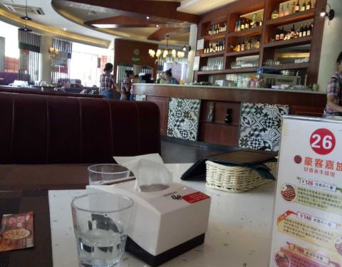 服务不专业,态度超级差。坐下也不给倒水,叫了几遍才来服务员。点餐的时候也不询问我牛排要几成熟,结果上来的牛排都还有血!让他们拿回去换还有怨言。点的牛排不好吃,点的经典披萨也特别难吃,牛排里面的配汤...